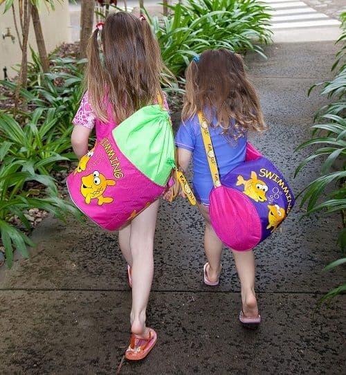 Kids Waterproof Swim Bag Lime & Pink Hibiscus Flower Design