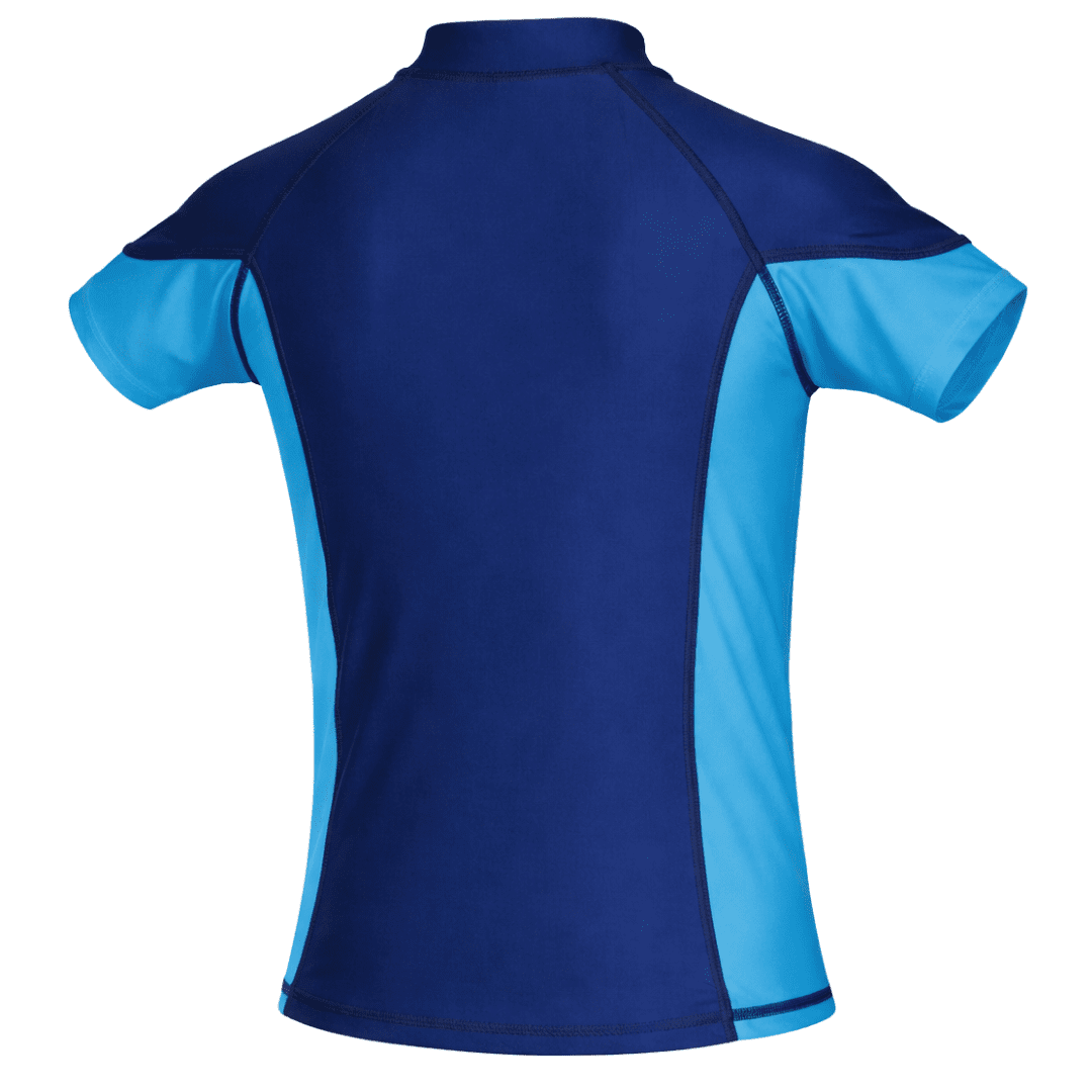 The Kidz Swimmers Estate Blue & Jasmine Green short-sleeve rash vest provides UPF 50+ sun protection for safe days at the beach or pool. Made from soft, quick-dry fabric for comfort and movement. Available in 11–12 yrs and 13–14 yrs, this swim top keeps kids protected in style.