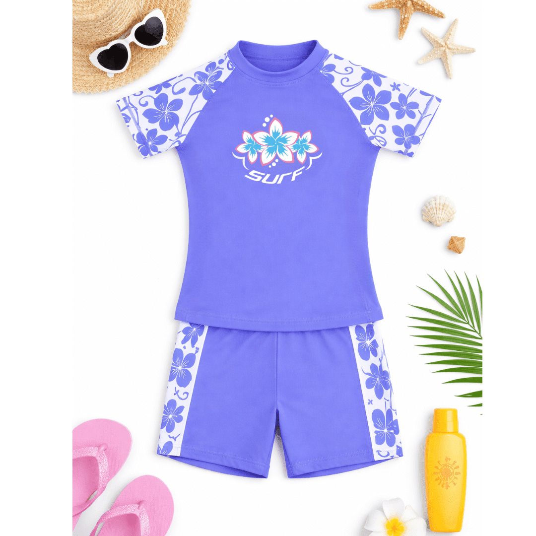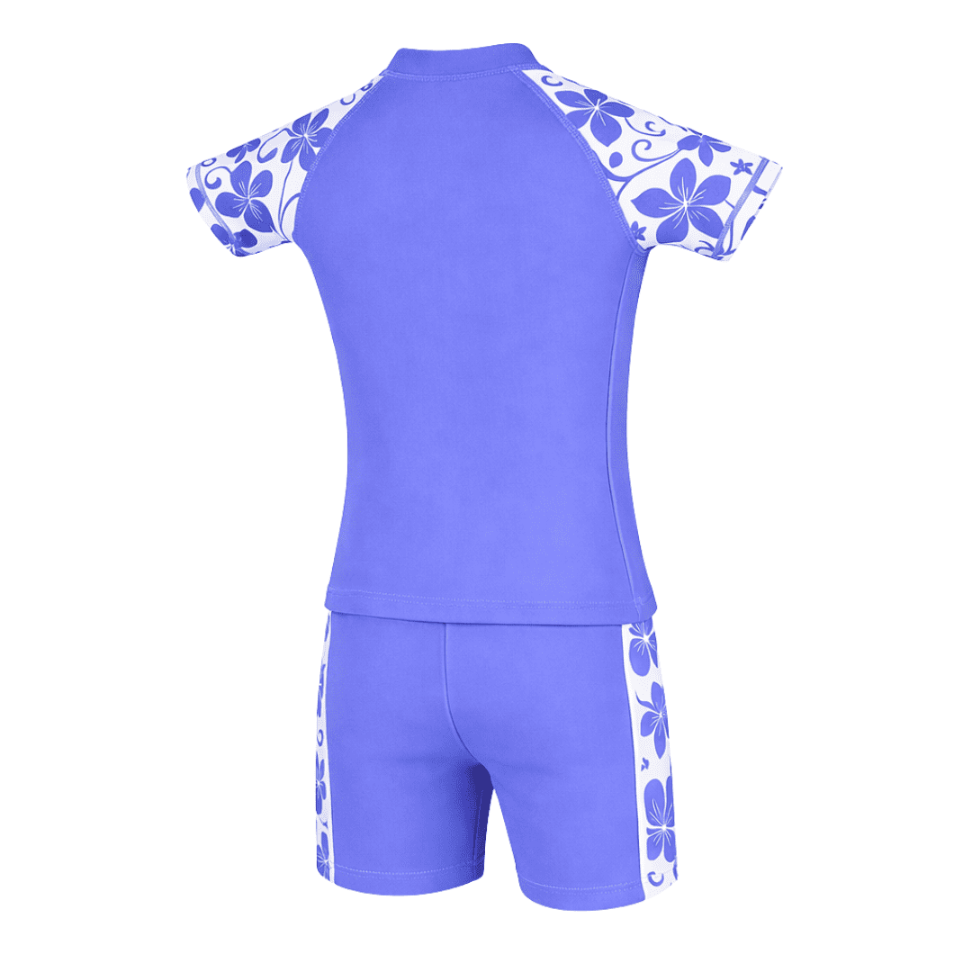 This Kidz Swimmers girls’ UPF 50+ long-sleeve swim top in Very Peri Purple and Fuchsia Pink provides excellent UV sun protection for swimming, beach days and holidays. Made from soft, quick-dry fabric, it offers comfortable, flexible coverage and pairs easily with any girls’ swimwear. Available in sizes 5–14 years.